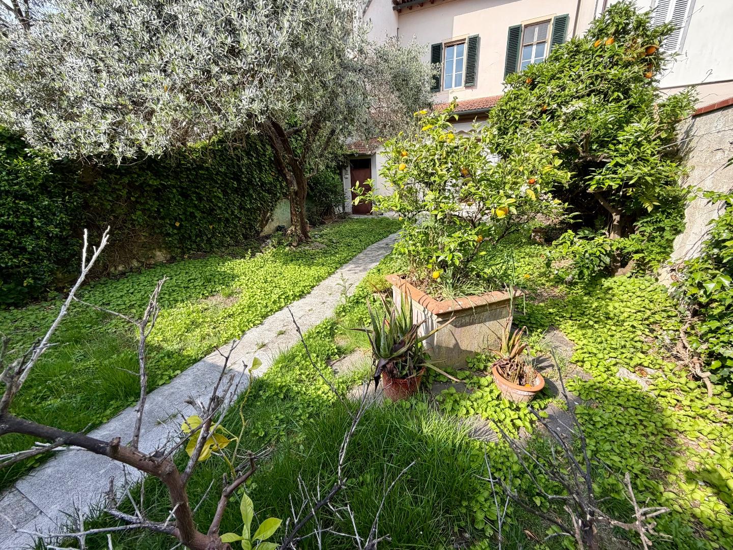 La proprietà è completata da una spaziosa soffitta e, sul lato tergale, da un grande giardino vivibile arricchito da tre locali accessori adibiti a lavanderia, ripostiglio e seconda cucina.