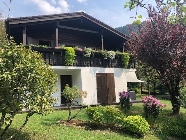 Outside, the chalet is surrounded by a large, fully fenced garden, featuring fruit trees. The property is completed by a charming stone outbuilding for storing tools.