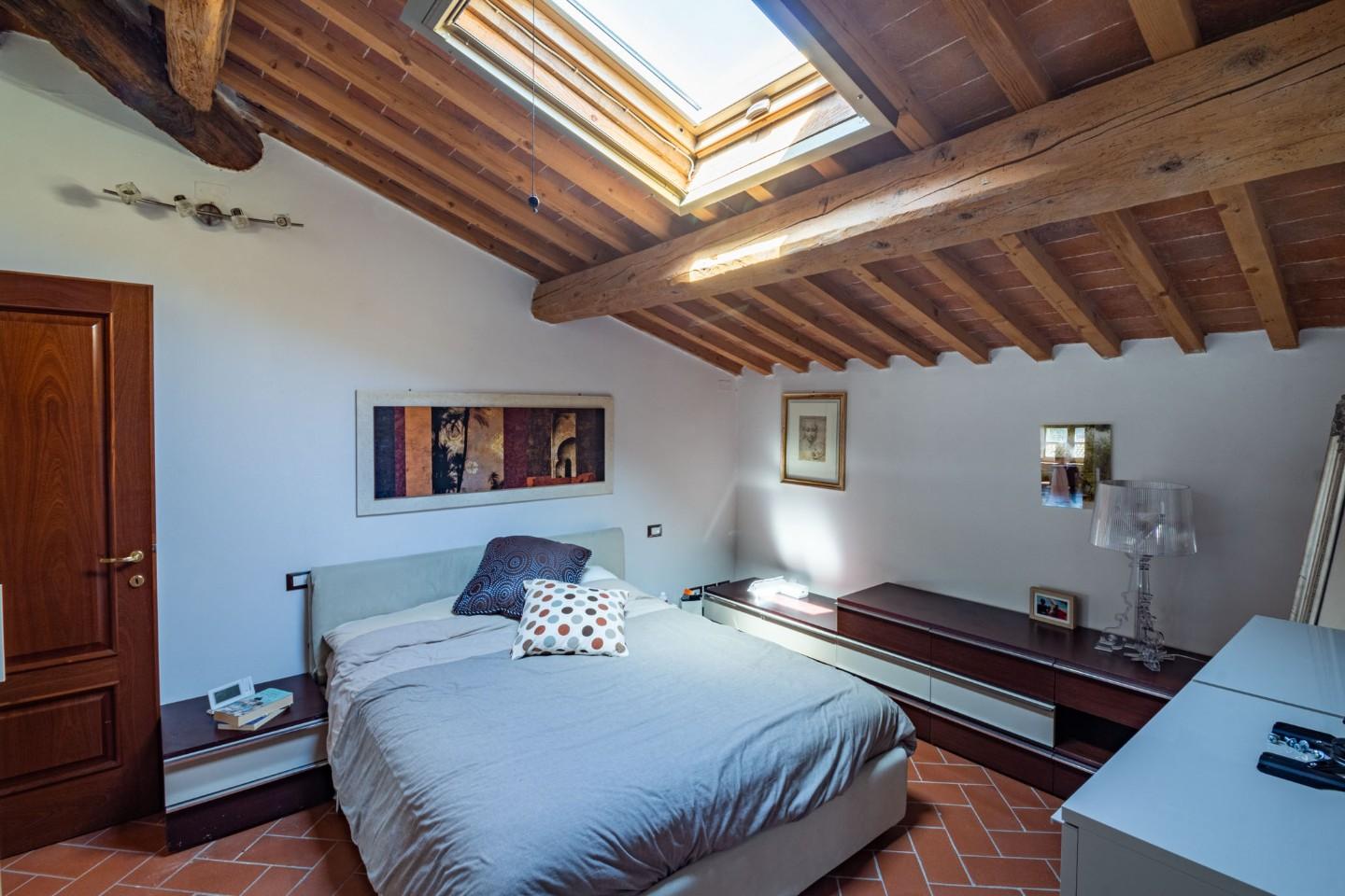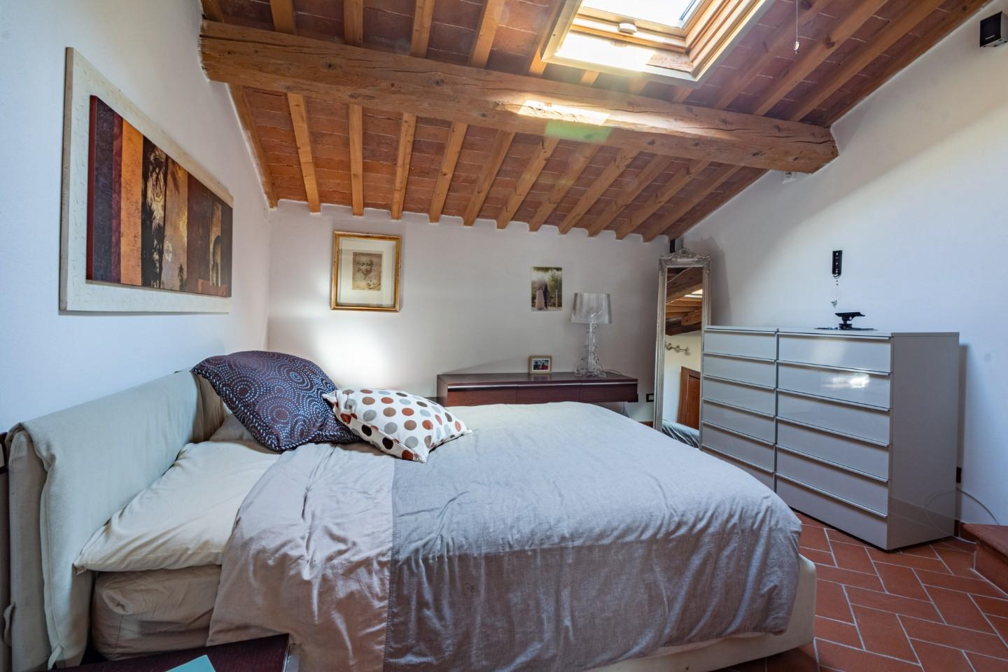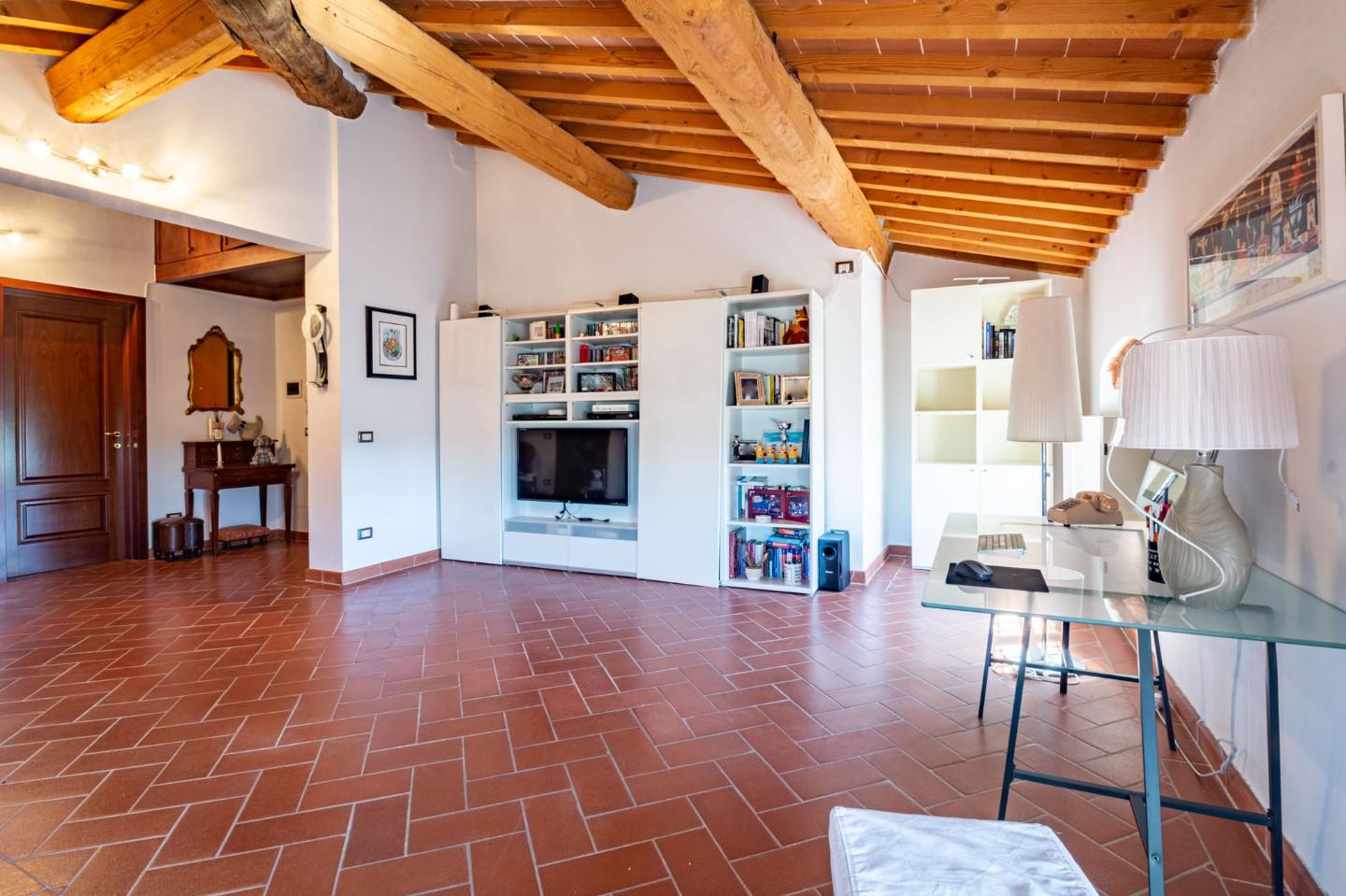 MEZZANA - VIA TONIOLO Nel cuore di Mezzana, proponiamo in vendita un affascinante appartamento situato all’interno della prestigiosa Villa Giuliani Sangiugni, elegante dimora storica risalente ai primi anni del 1800 e completamente ristrutturata nel 2008. L’immobile si trova al secondo ed ultimo piano, accessibile da una suggestiva scala interna in pietra, e si inserisce in un contesto signorile impreziosito da un giardino condominiale perfettamente curato, ideale per chi cerca tranquillità, eleganza e qualità della vita. La zona giorno, con ingresso living in open-space, regala un’atmosfera calda e accogliente, ideale per momenti di relax o convivialità. La zona notte comprende una camera matrimoniale con cabina armadio, illuminata da un elegante lucernario, una stanza guardaroba attualmente adibita a seconda camera e un bagno spazioso, dotato di finestra e una grande vasca. L’intervento di ristrutturazione ha valorizzato i dettagli architettonici originali, mantenendo lo stile tipico toscano e abbinandolo a soluzioni moderne per il comfort quotidiano. A completare la proprietà un posto auto esclusivo all’interno della corte condominiale, con doppio accesso carrabile.