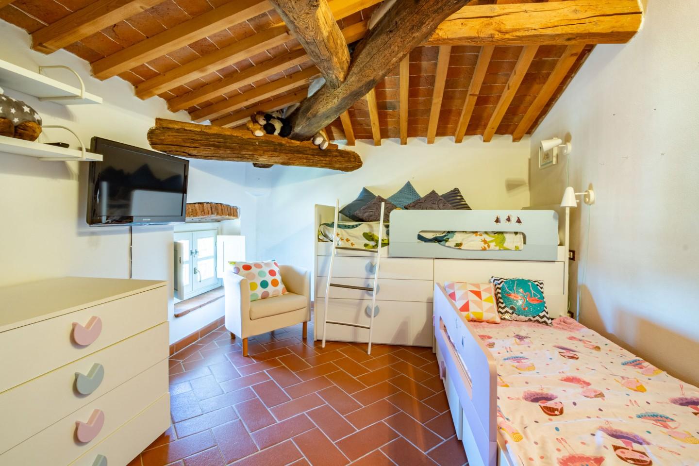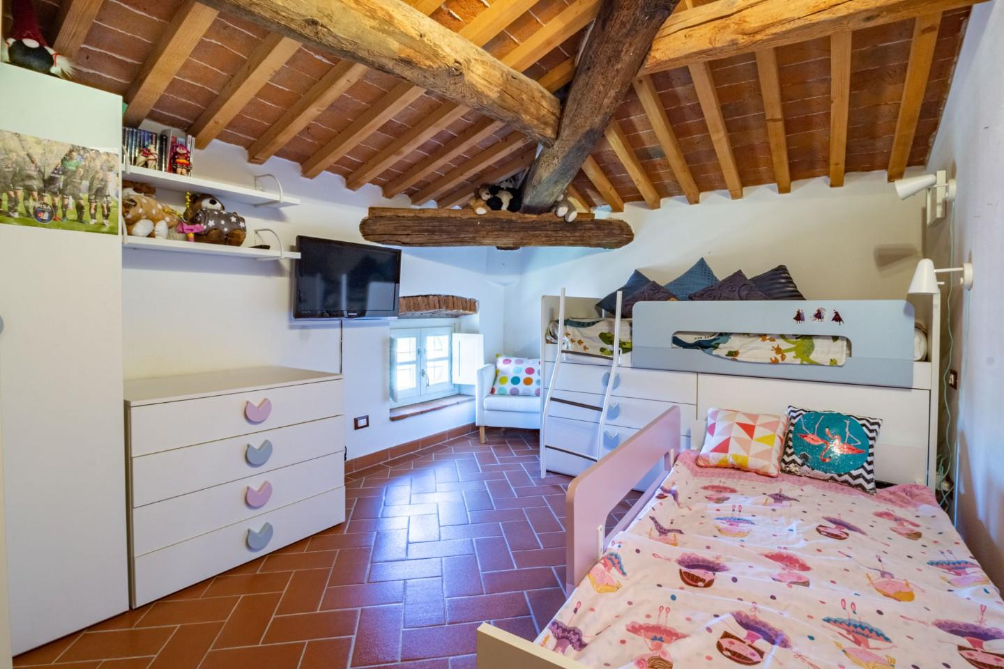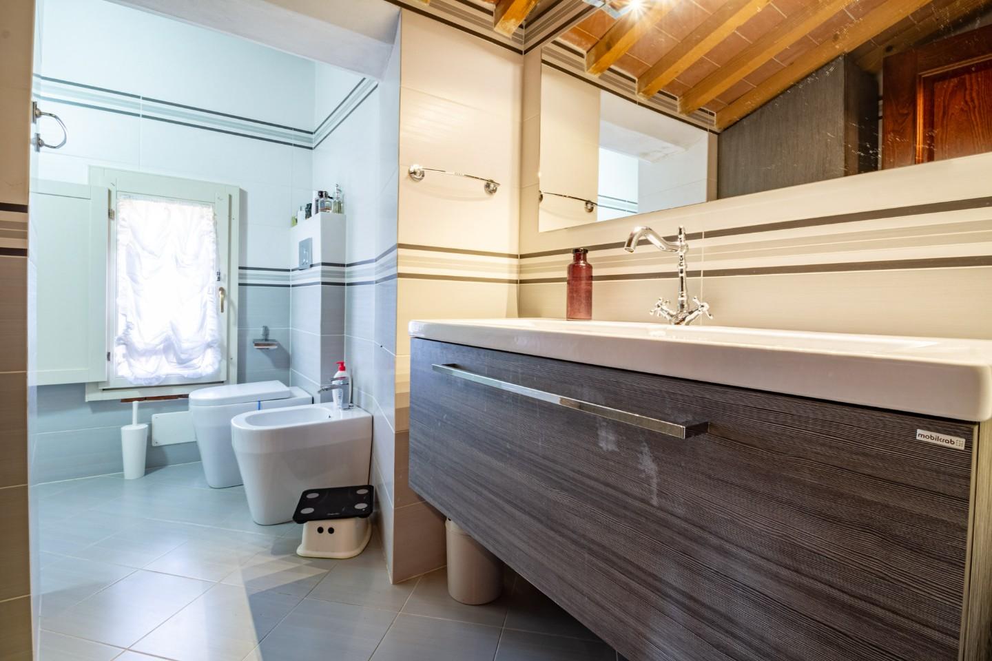 L’intervento di ristrutturazione ha valorizzato i dettagli architettonici originali, mantenendo lo stile tipico toscano e abbinandolo a soluzioni moderne per il comfort quotidiano.