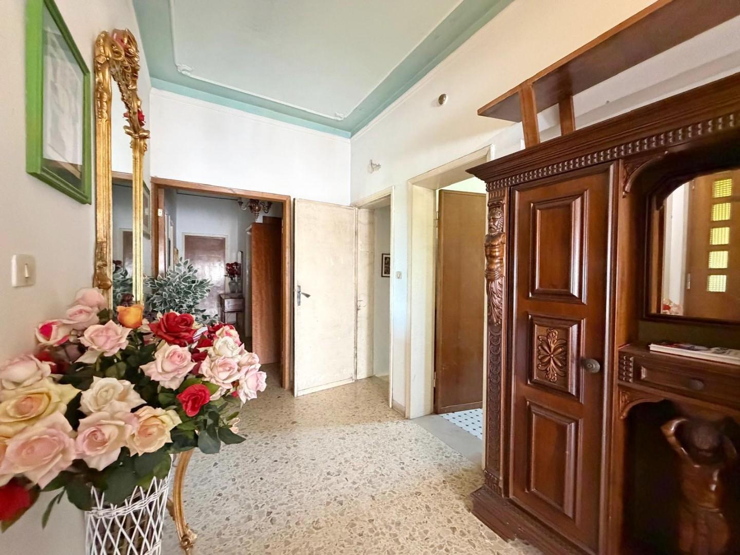 Primo Piano (Carattere Classico): Caratterizzato da pavimenti in graniglia a grana grossa e spazi ampi tipici delle ville signorili, questo livello si presenta in buone condizioni ma necessita di alcuni interventi di ammodernamento (infissi e impianto elettrico).