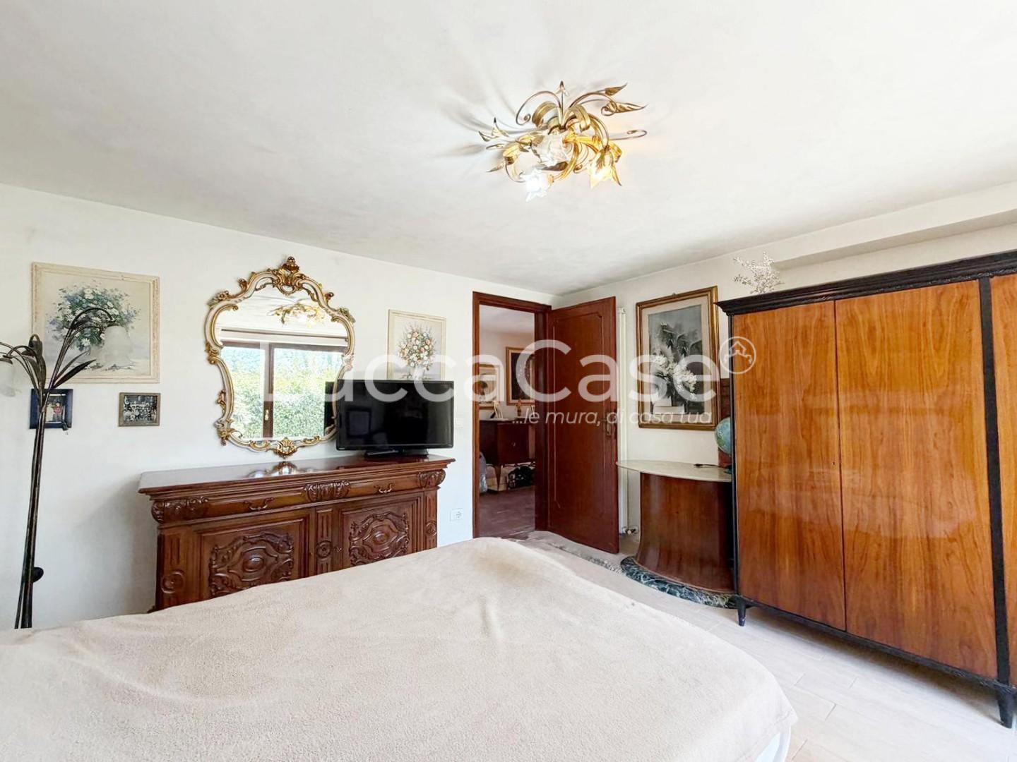 Se cerchi una residenza che offra ampi spazi, indipendenza e la possibilità di ospitare due nuclei familiari senza rinunciare alla privacy, questa villa singola è la soluzione ideale. Situata in una zona verde e riservata a pochi minuti da Lucca, la proprietà si sviluppa su due livelli circondata da un generoso giardino privato su quattro lati.