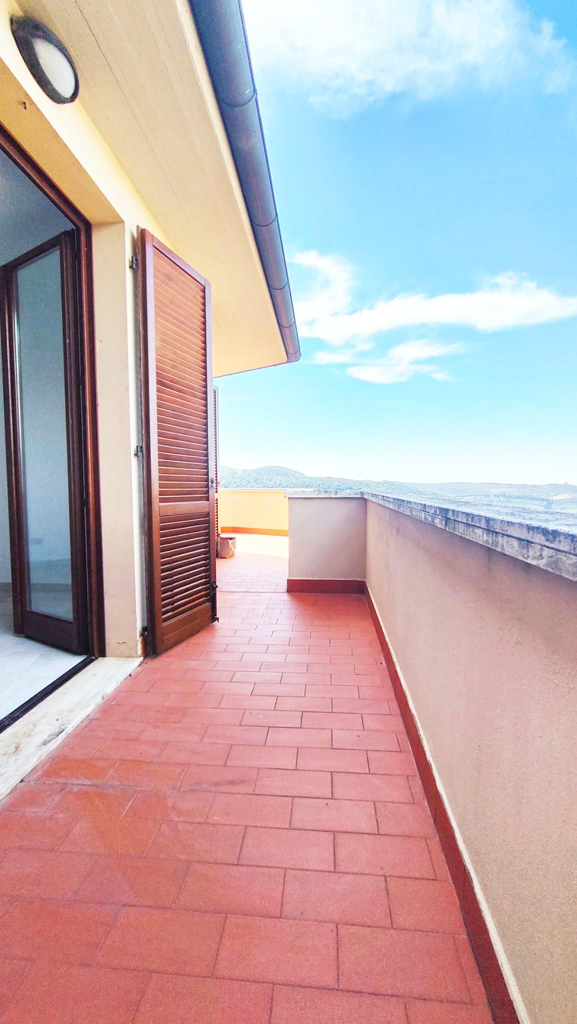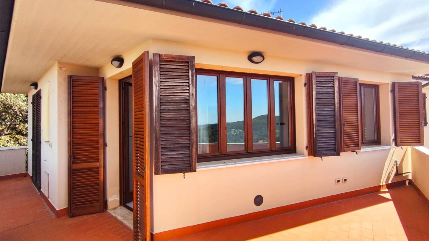L’ingresso è indipendente tramite scala esterna e conduce direttamente alla zona giorno: un ambiente accogliente con cucina e soggiorno, reso unico dall’accesso a un ampio terrazzo panoramico. Da qui si gode di una splendida vista aperta sul mare e sul borgo, perfetta per momenti di relax.