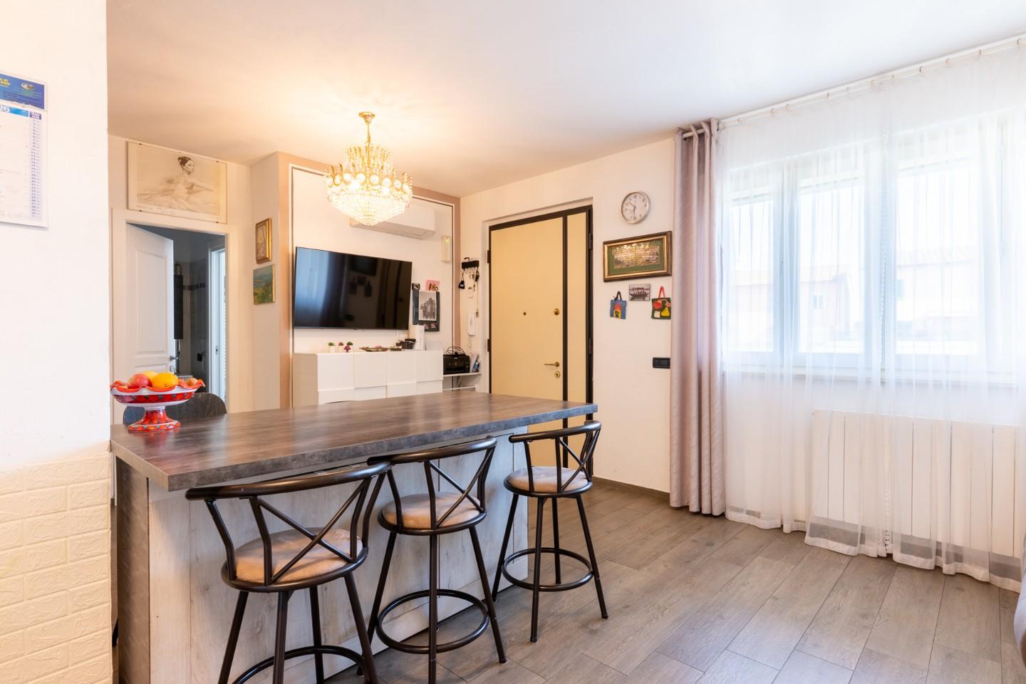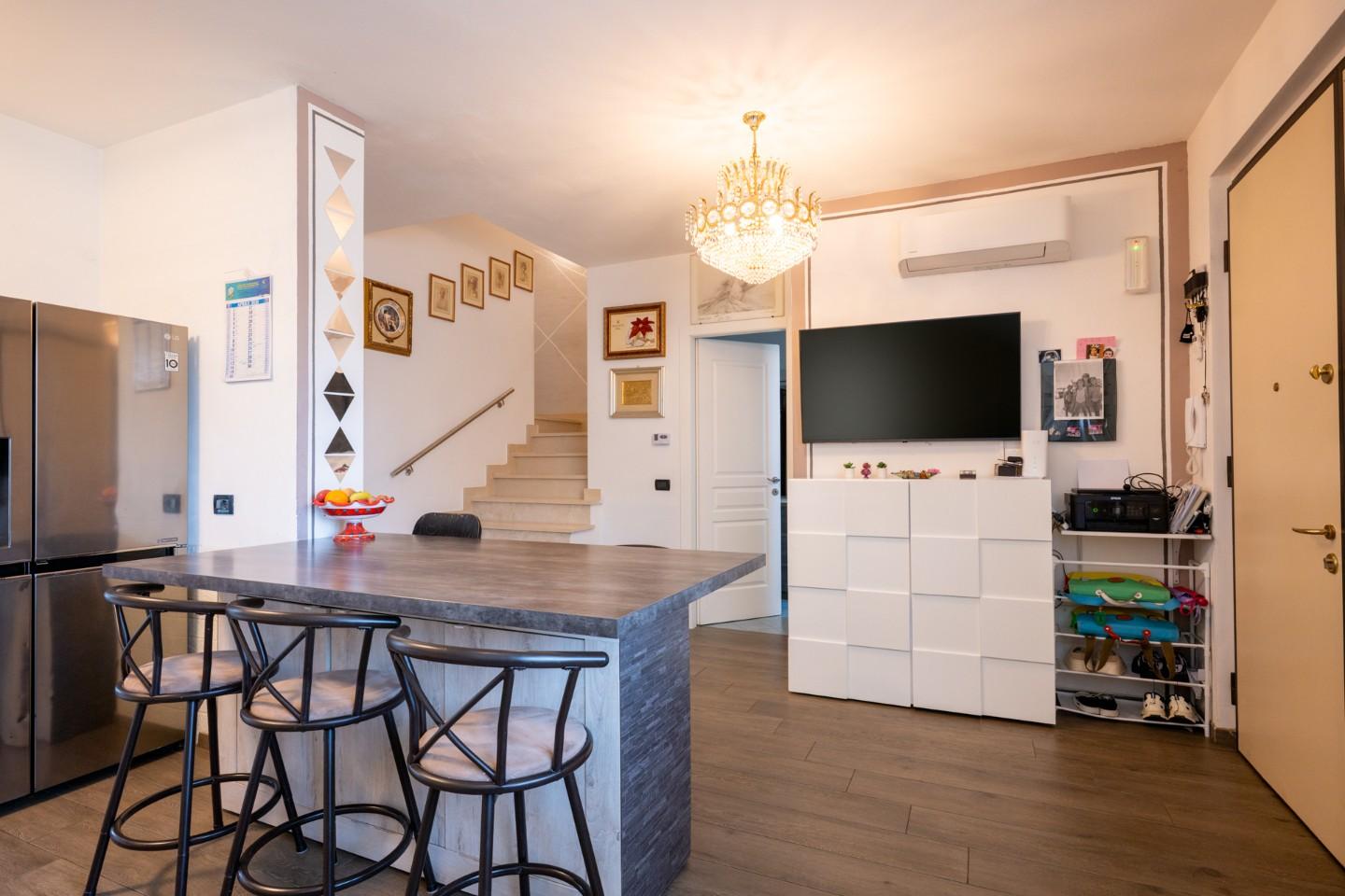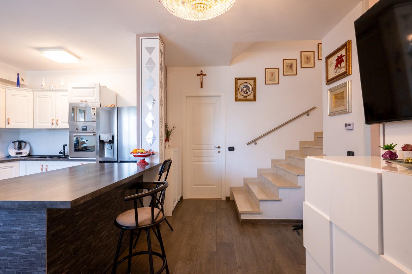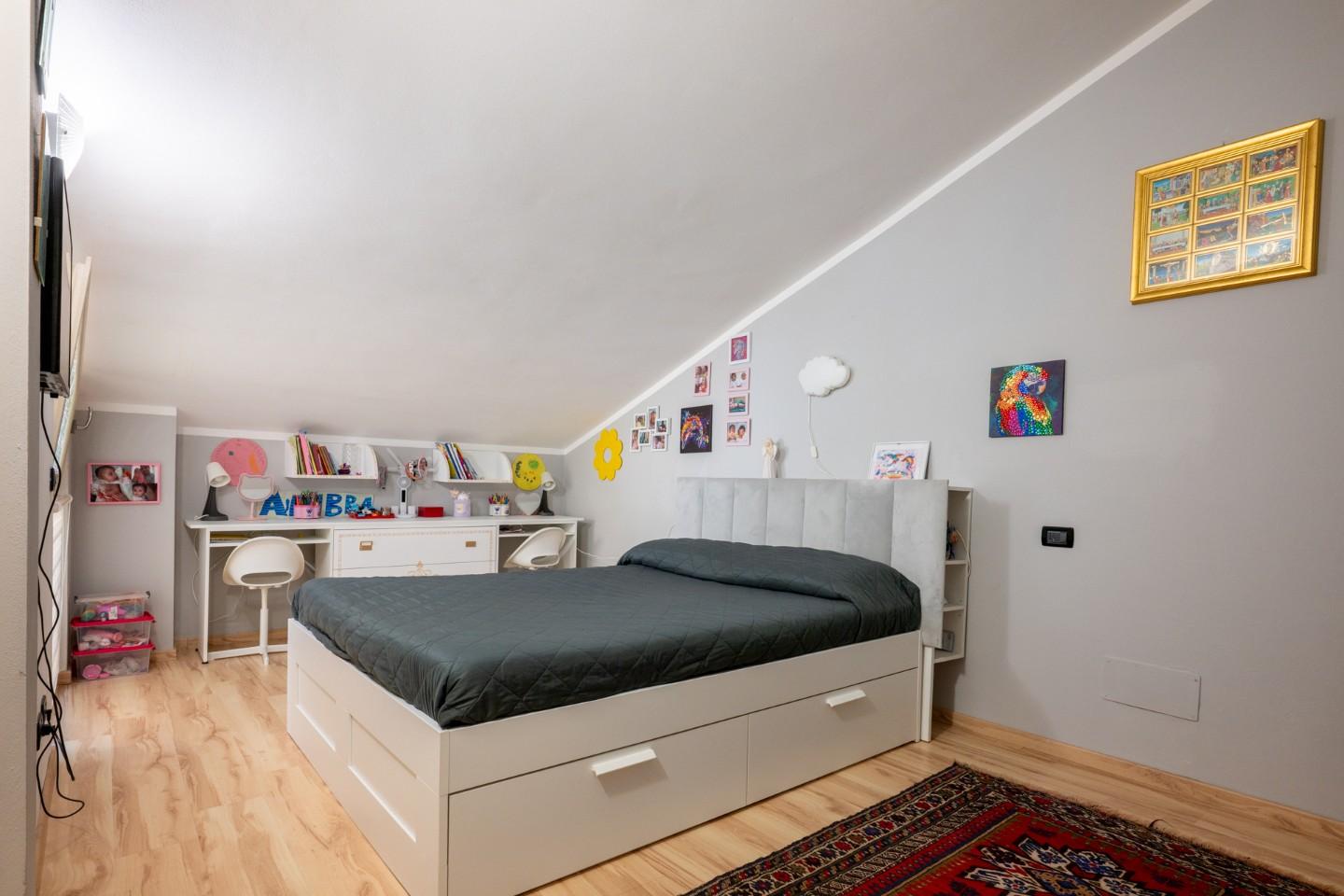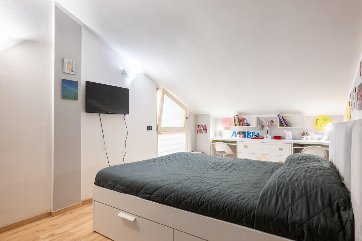 • Piano Sottotetto: Una splendida mansarda finestrata con terrazza a tasca e ripostiglio. Uno spazio versatile da trasformare in terza camera, studio professionale o sala giochi.