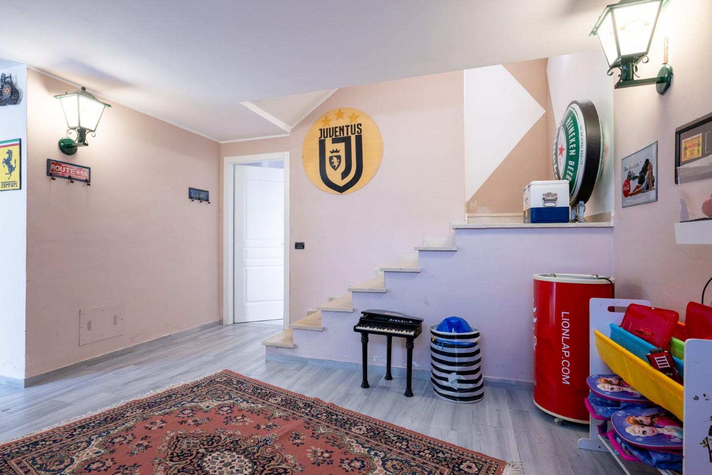 • Piano Seminterrato: Funzionale e spazioso, ospita il locale tecnico, un ripostiglio/ricovero attrezzi e un ampio garage di 22 mq.
