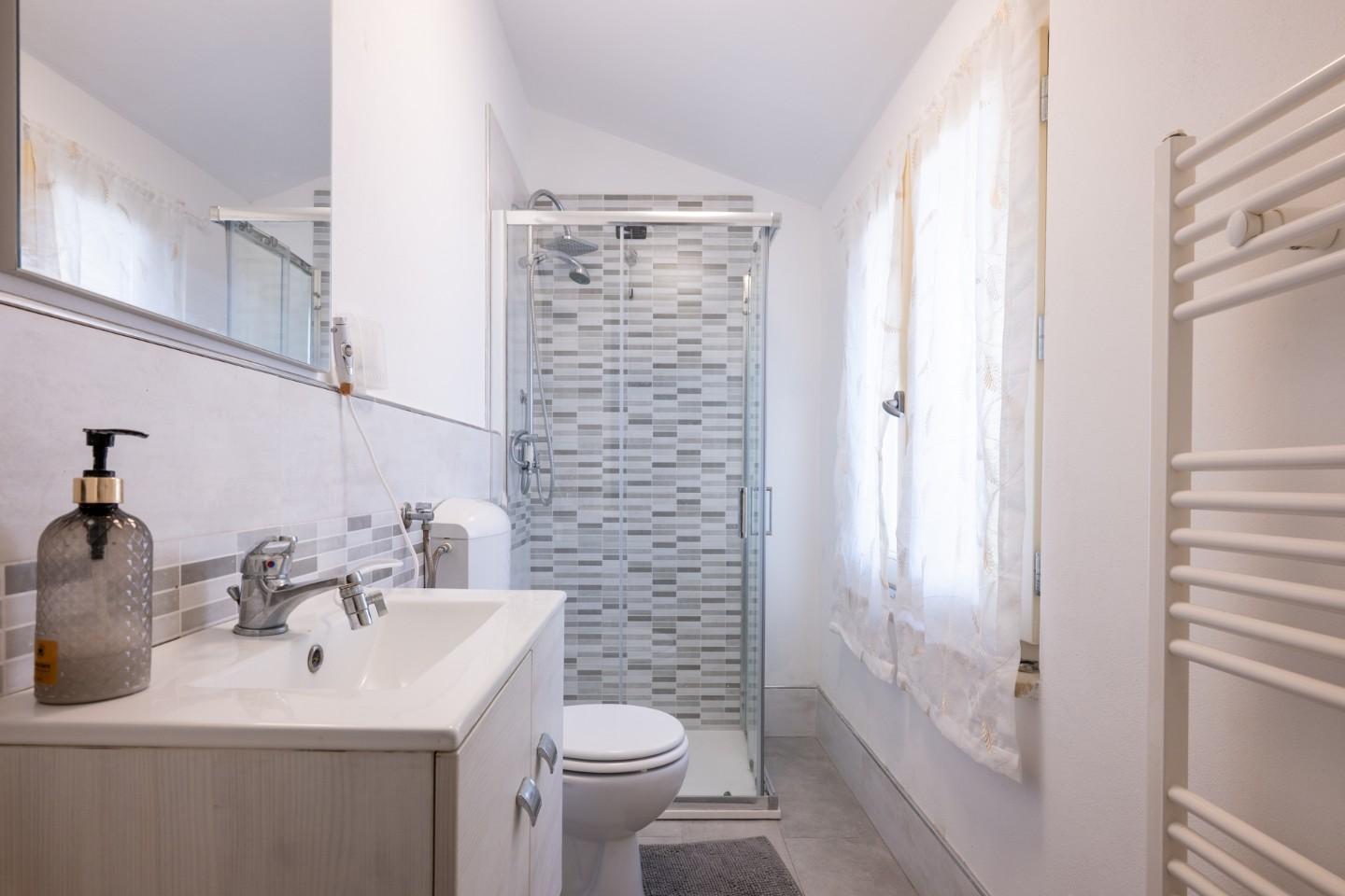 • Piano Primo: La zona notte comprende una spaziosa camera matrimoniale, una camera singola, bagno principale finestrato con doccia e una ampia terrazza abitabile.