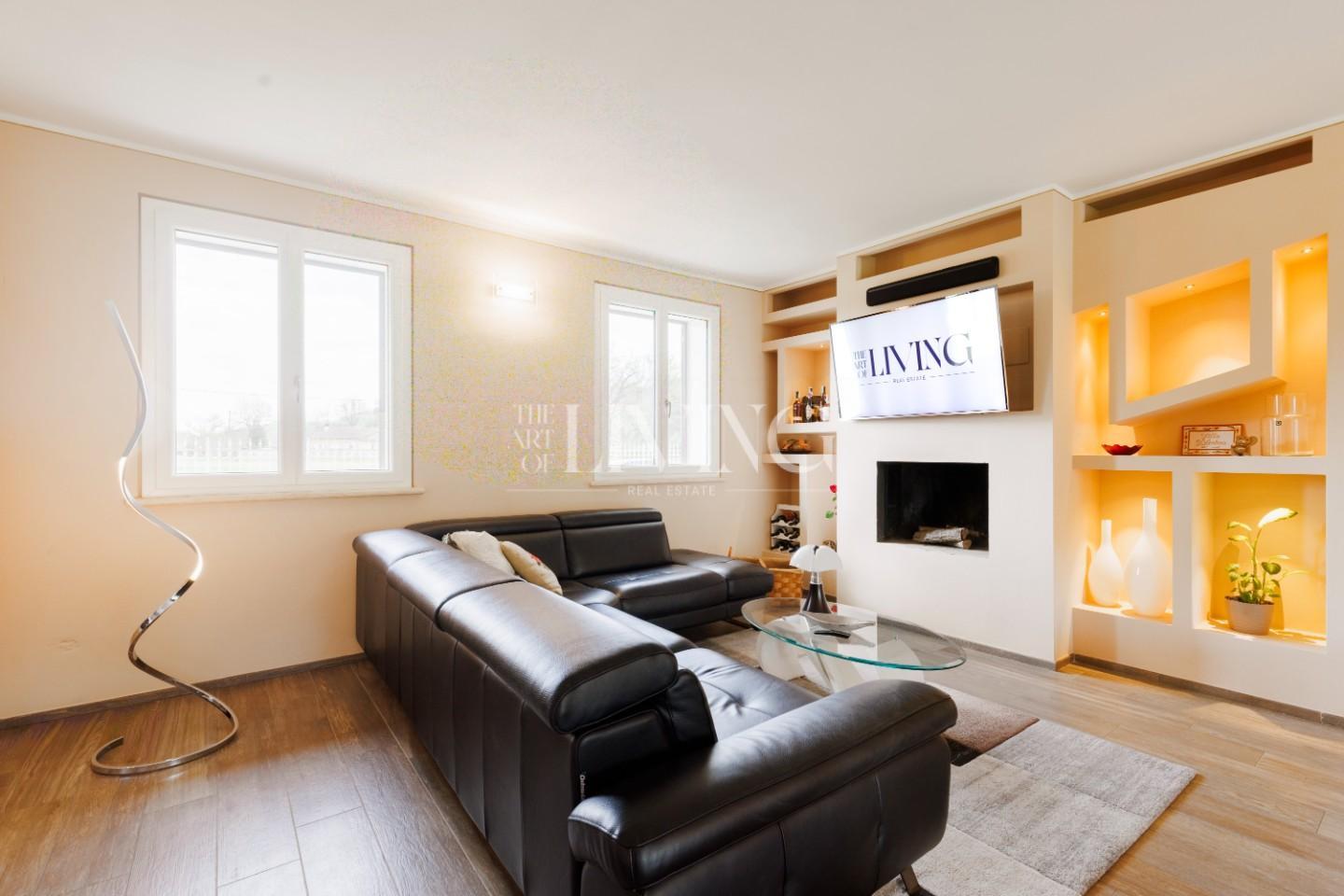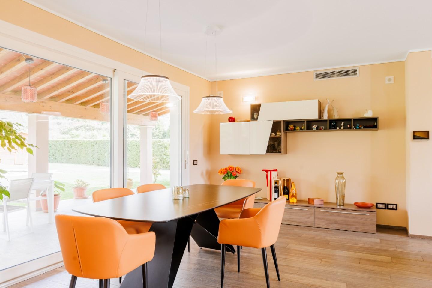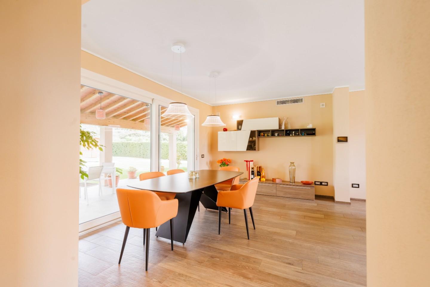 L’abitazione, costruita circa sette anni fa, si presenta in condizioni impeccabili ed è stata progettata per offrire un’esperienza abitativa moderna e senza compromessi. Gli ambienti interni sono accoglienti, luminosi e ben distribuiti. Al piano terra, il cuore della casa è rappresentato da un ampio living open space con zona pranzo e camino a legna, uno spazio che invita naturalmente alla condivisione e al relax quotidiano. La cucina, funzionale e ben integrata, dialoga perfettamente con la zona giorno, mentre un bagno di servizio e un comodo ripostiglio completano il livello.