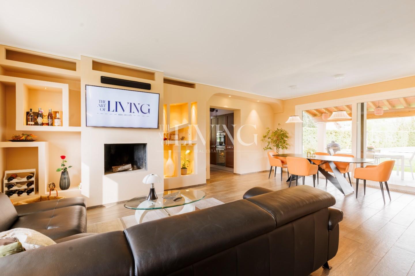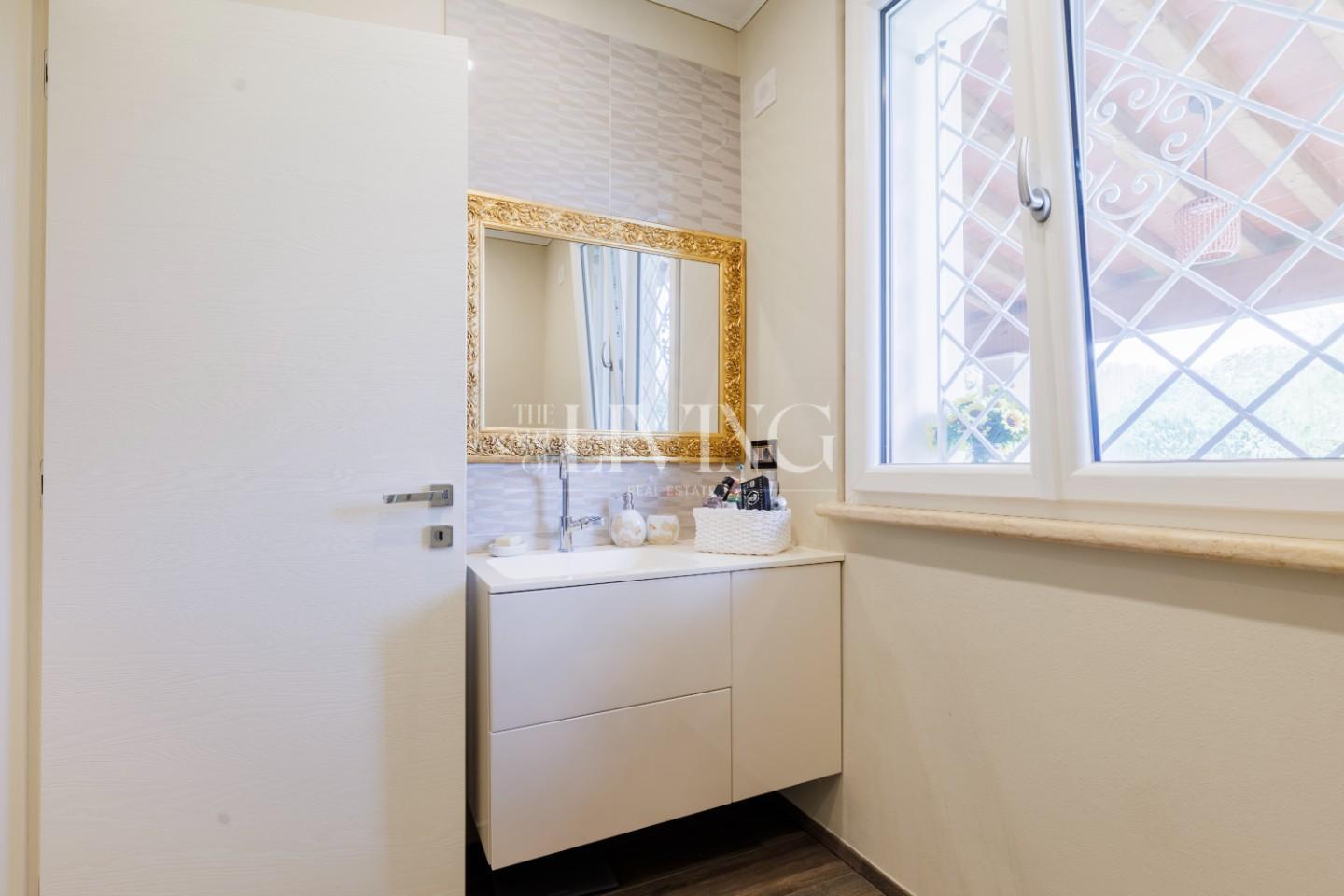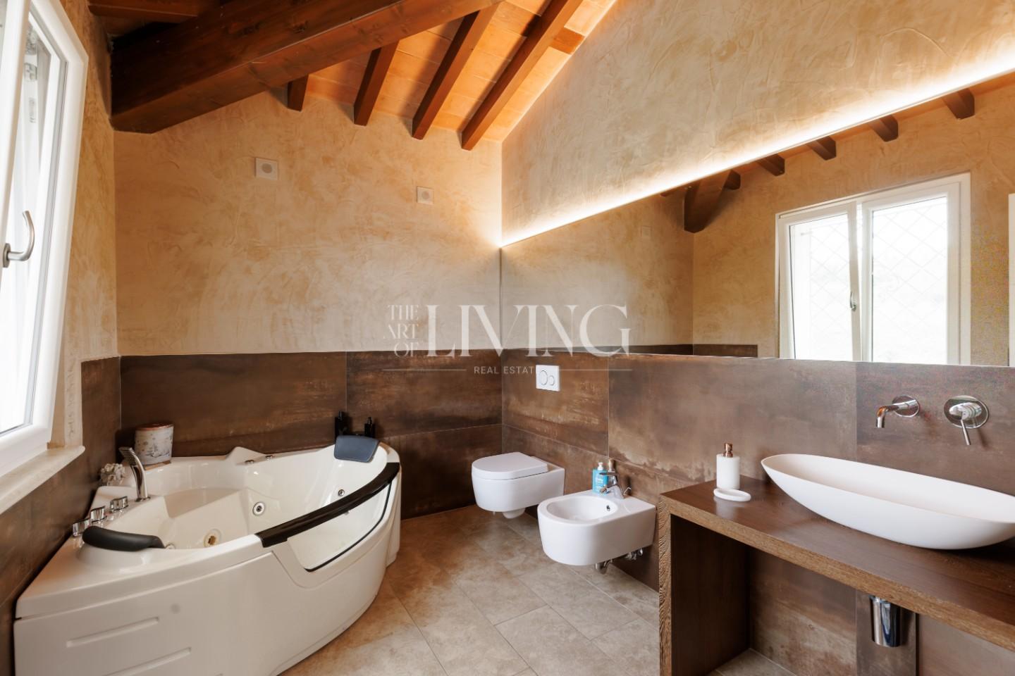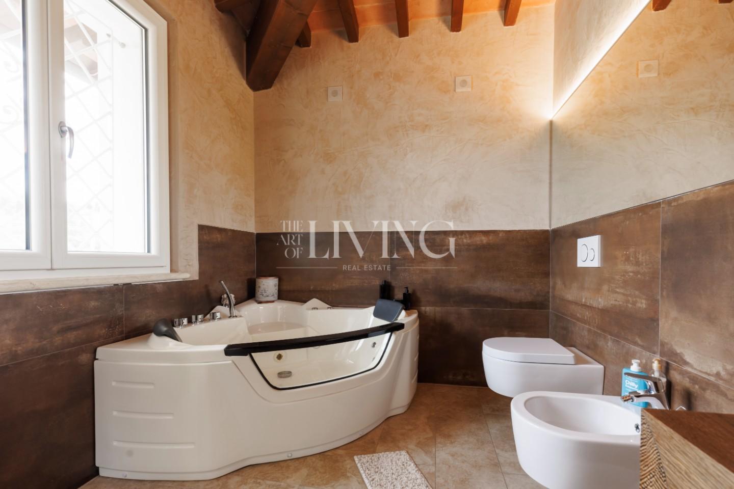 Ciò che rende questa proprietà particolarmente interessante è anche l’attenzione dedicata agli aspetti tecnologici e all’efficienza. La villa è dotata di impianti di ultima generazione che migliorano concretamente la qualità della vita quotidiana: dal riscaldamento a pavimento al sistema domotico, dall’impianto di climatizzazione ai pannelli solari, fino ai sistemi di sicurezza e gestione degli spazi esterni. Ogni elemento è stato pensato per offrire comfort, praticità e serenità.