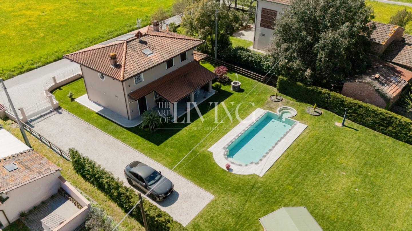 A pochi minuti dal centro storico di Lucca, nella quiete autentica delle sue colline a sud-est, si trova questa splendida villa indipendente di recente costruzione: una proprietà capace di coniugare in modo armonioso natura, comfort e innovazione.