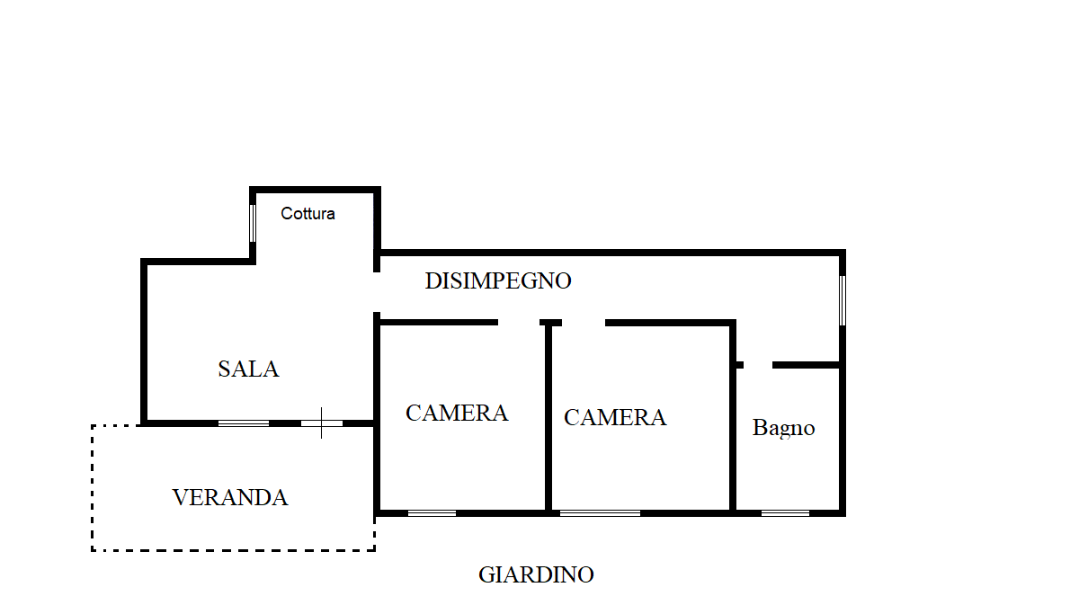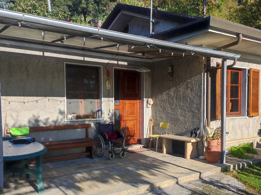La veranda d'ingresso, che per gran parte dell’anno è il vero ritrovo familiare, c’introduce nella zona giorno costituita da un salotto dotato di camino e cucina a vista, da un disimpegno notte che ci accompagna alle due grandi camere e all’ampio bagno.