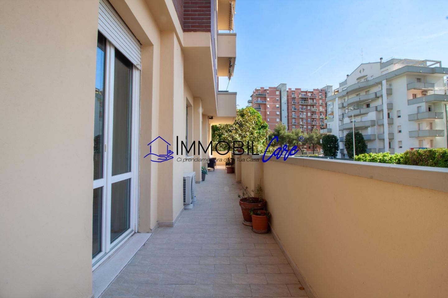 Punto di forza è il terrazzo perimetrale che circonda l’intero appartamento, garantendo un’eccellente esposizione e grande luminosità, essendo libero su tre lati.