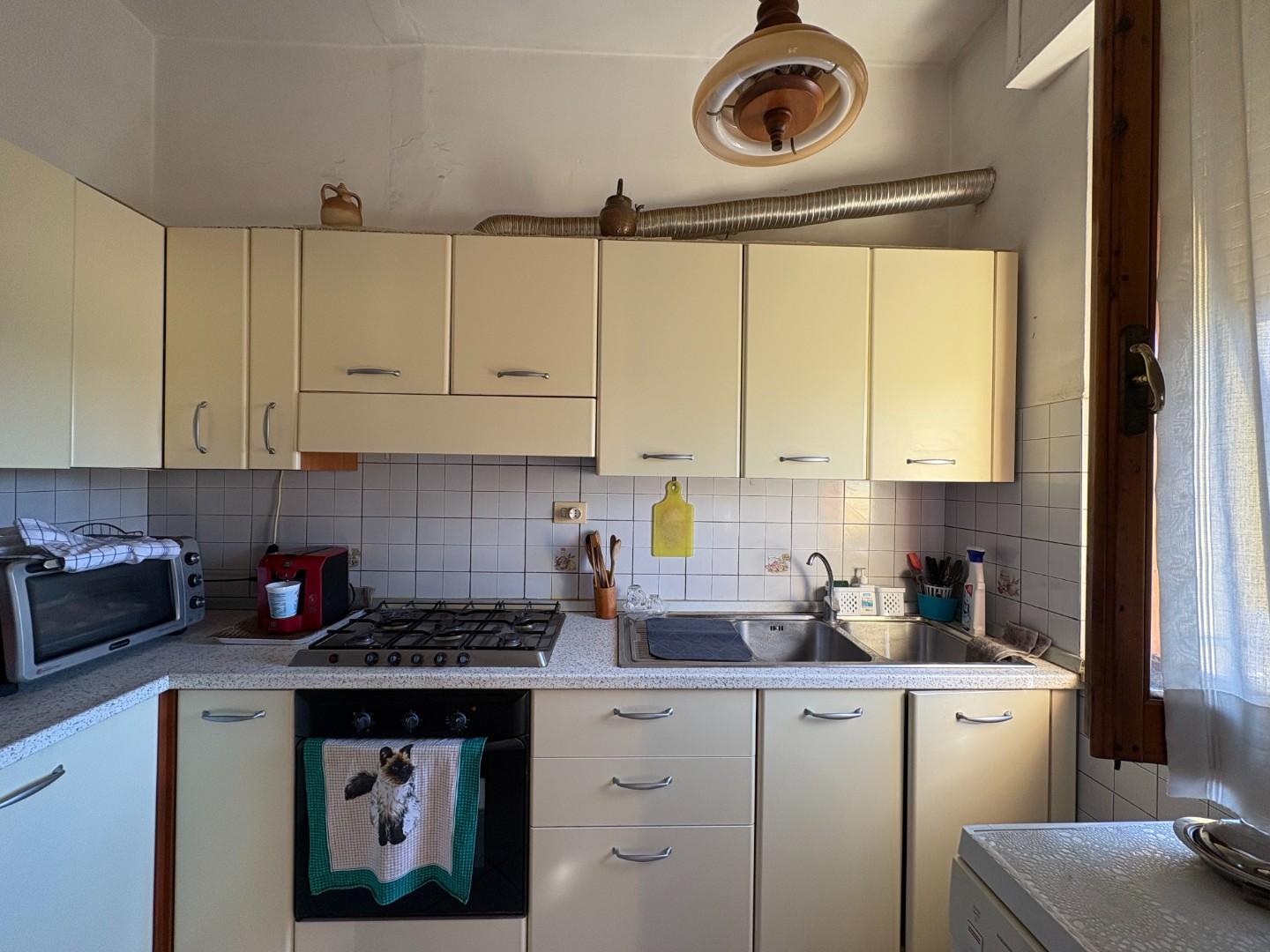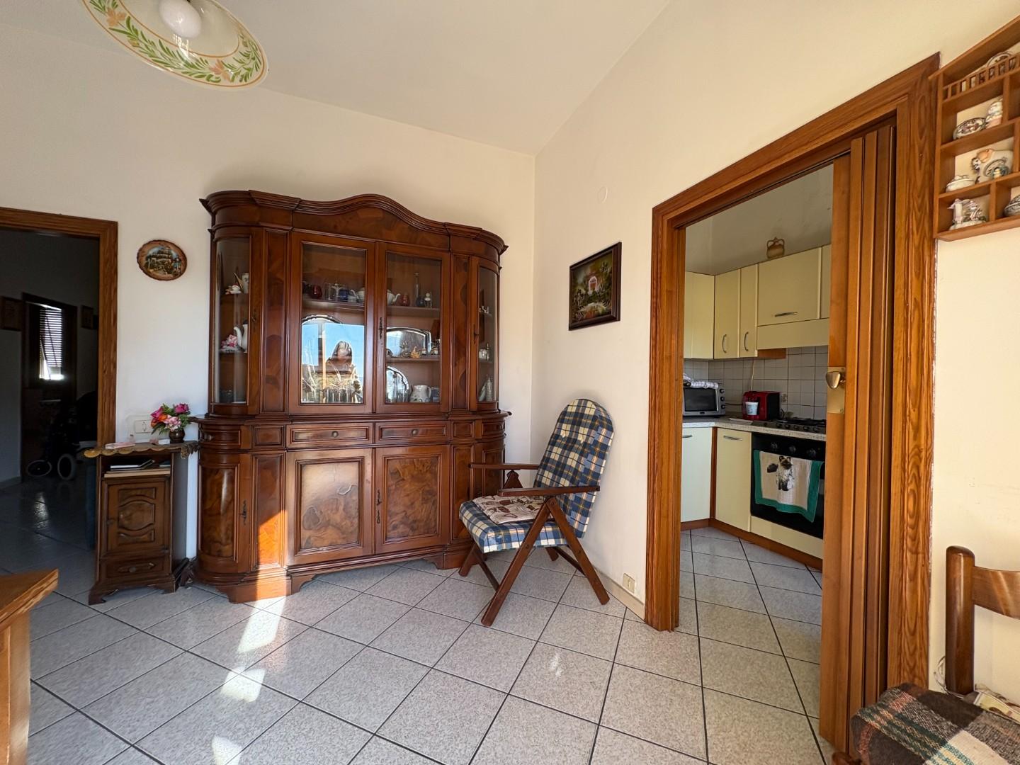 L’abitazione offre spazi comodi e ben distribuiti: la zona giorno si apre su una luminosa area pranzo con angolo cottura e accesso a un ampio terrazzo angolare, perfetto per momenti di relax all’aperto. Il soggiorno separato garantisce uno spazio accogliente per tutta la famiglia.