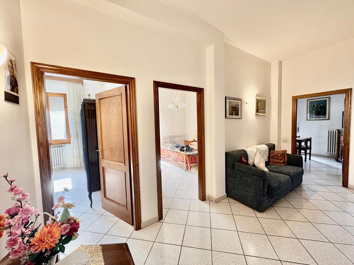 La zona notte comprende due ampie camere matrimoniali, ideali anche per nuclei familiari con figli, un bagno finestrato con doccia e un pratico ambiente aggiuntivo utilizzabile come studio, cameretta o ripostiglio, con accesso al secondo balcone.